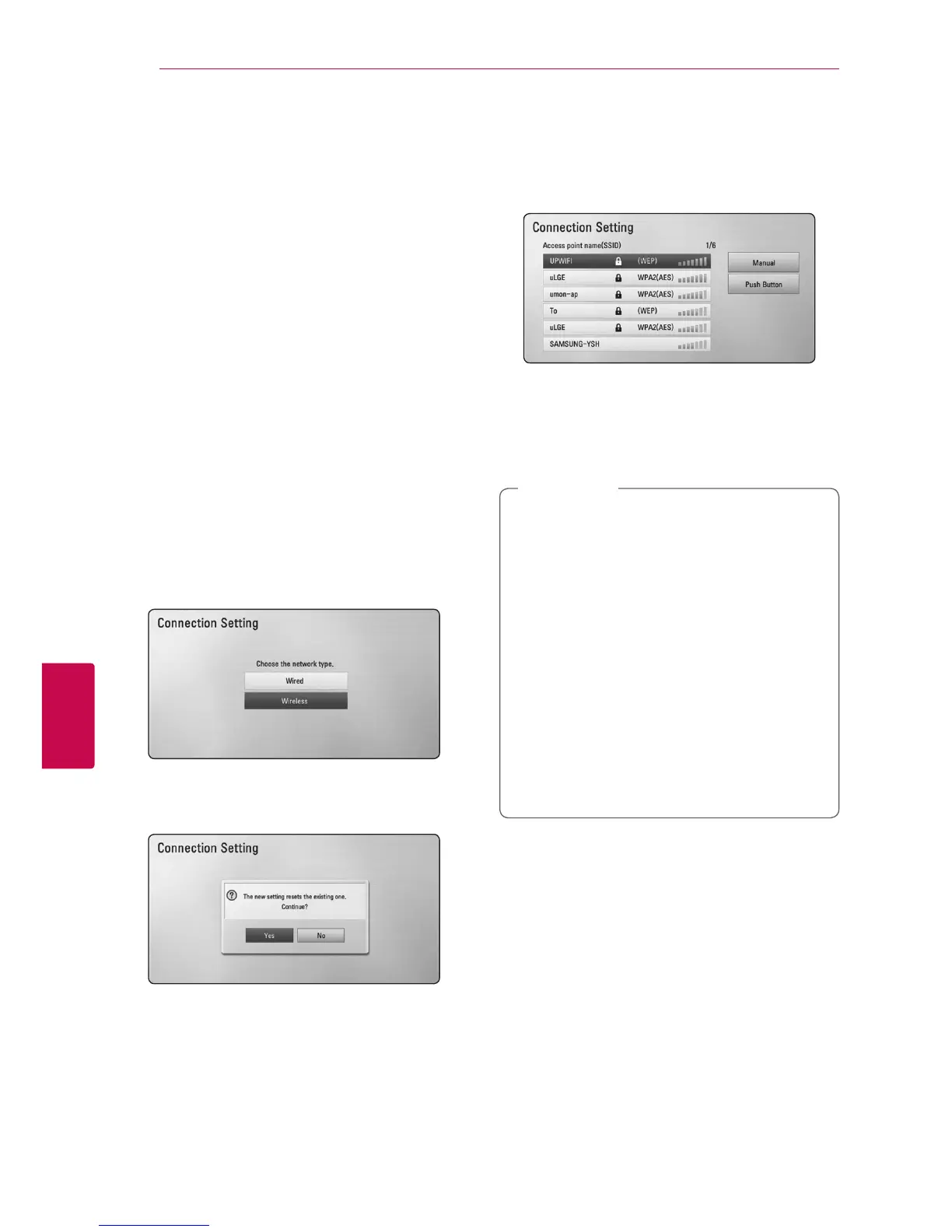 For the wireless network connection, the player
