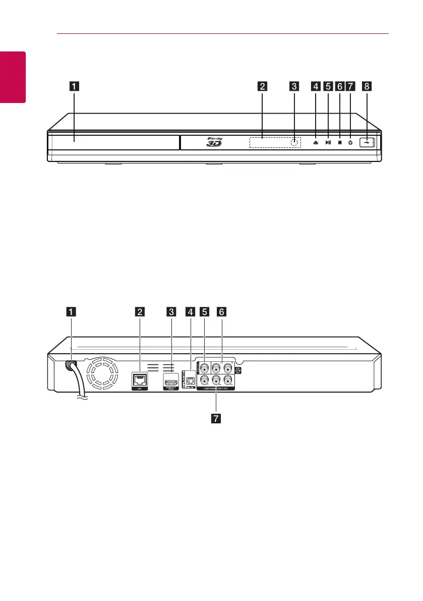 LG BD670 - Front Panel Connections and Controls; Rear Panel Connections and Ports