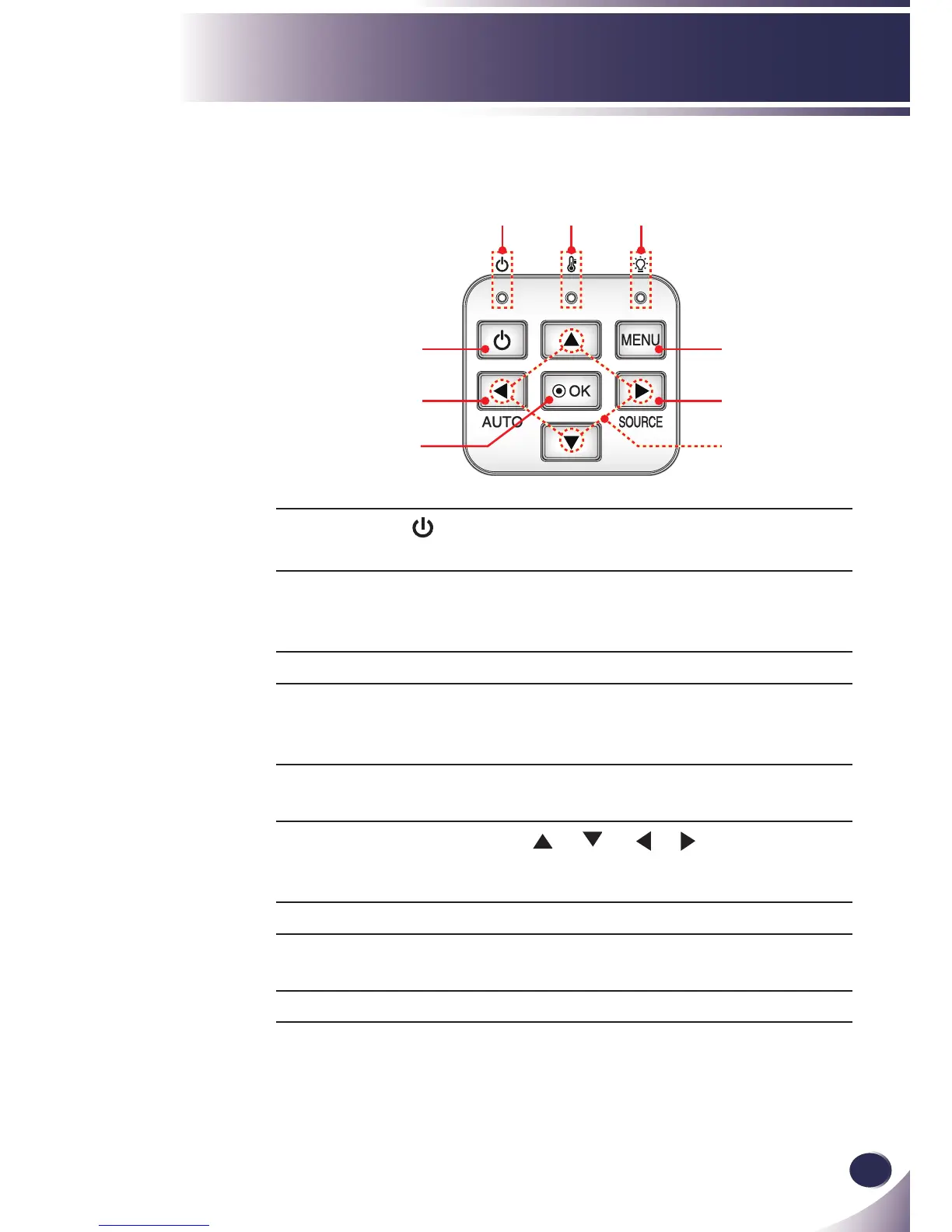 8 TEMP LED Indicate the projector’s temperature