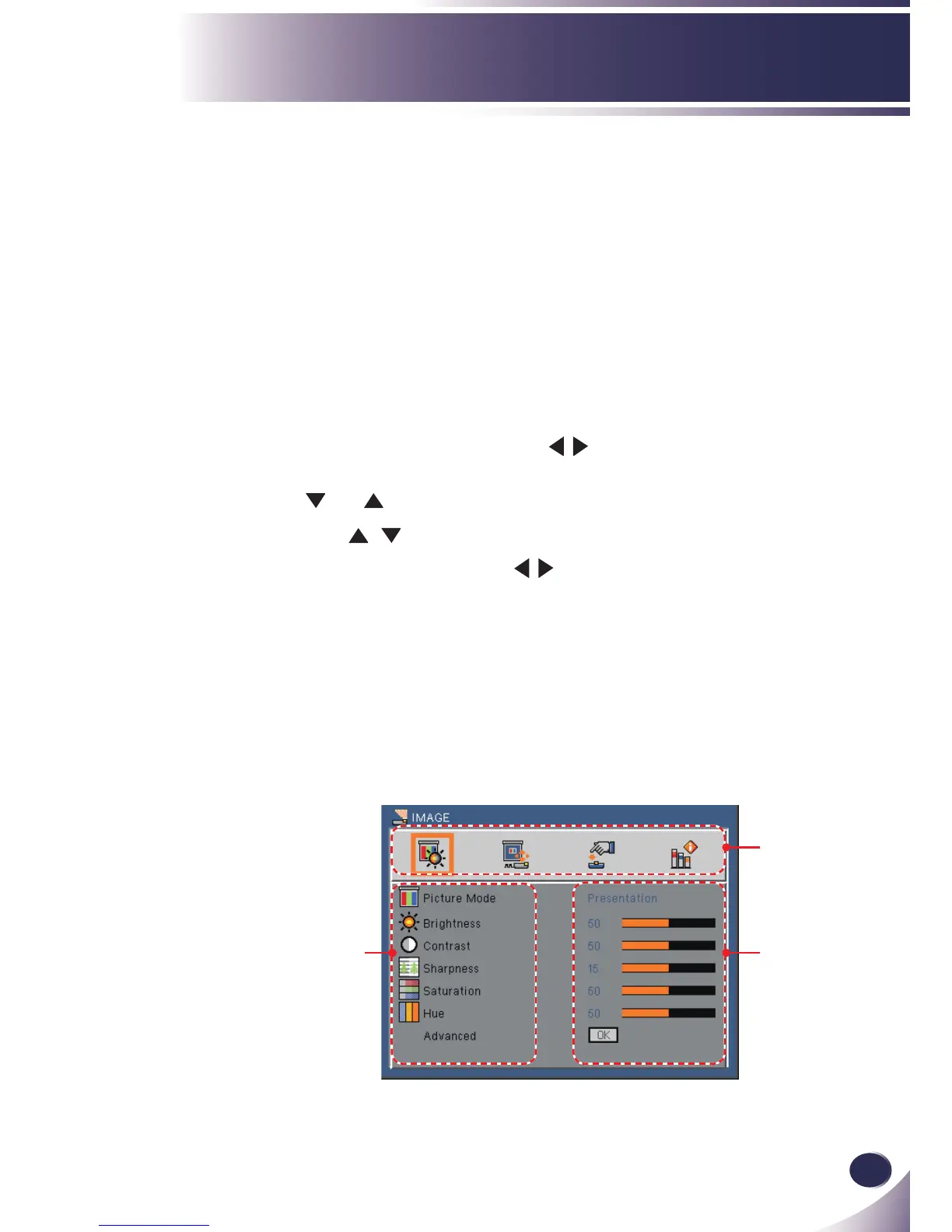 2. When OSD is displayed, use keys to select any item in the