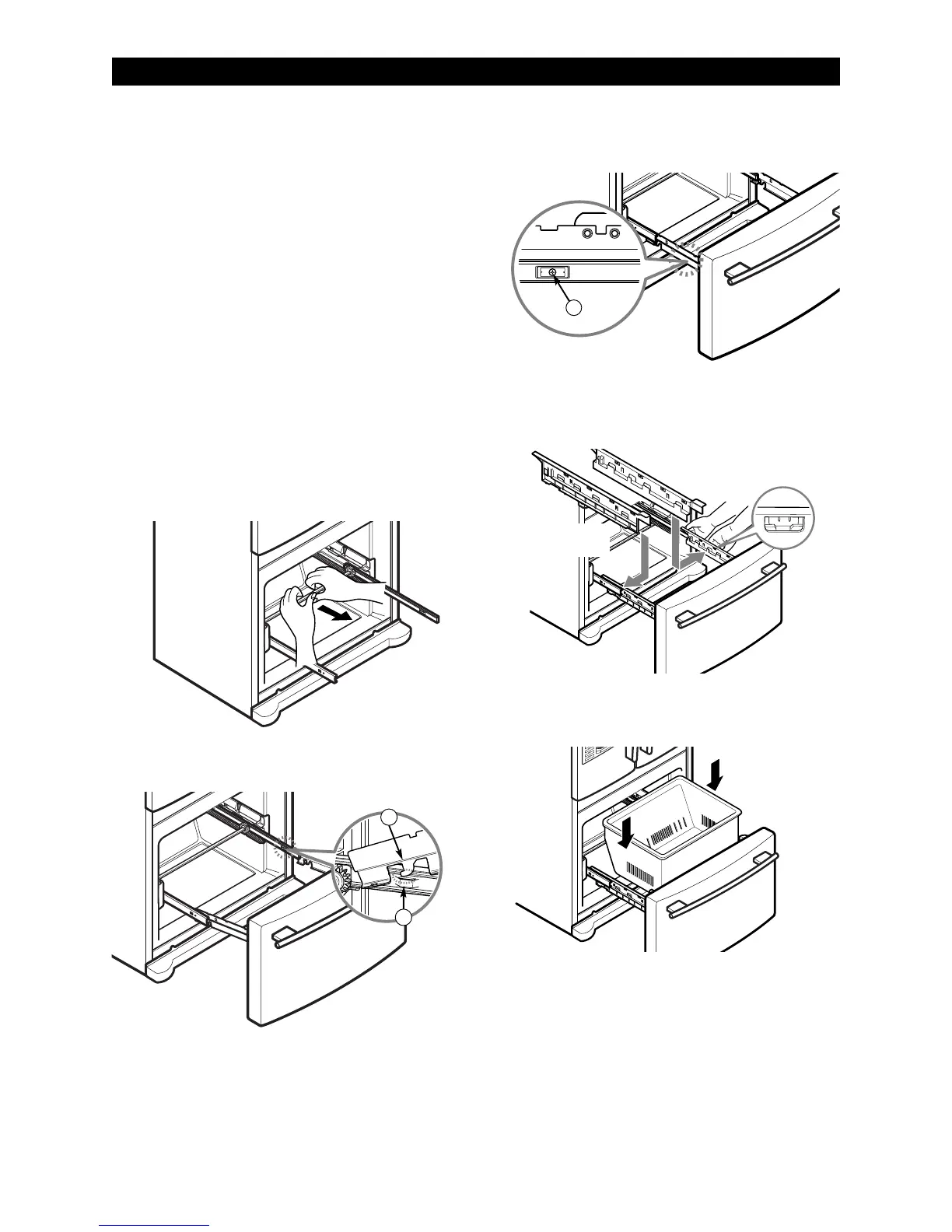 1. To reinstall the freezer drawer, hold the center