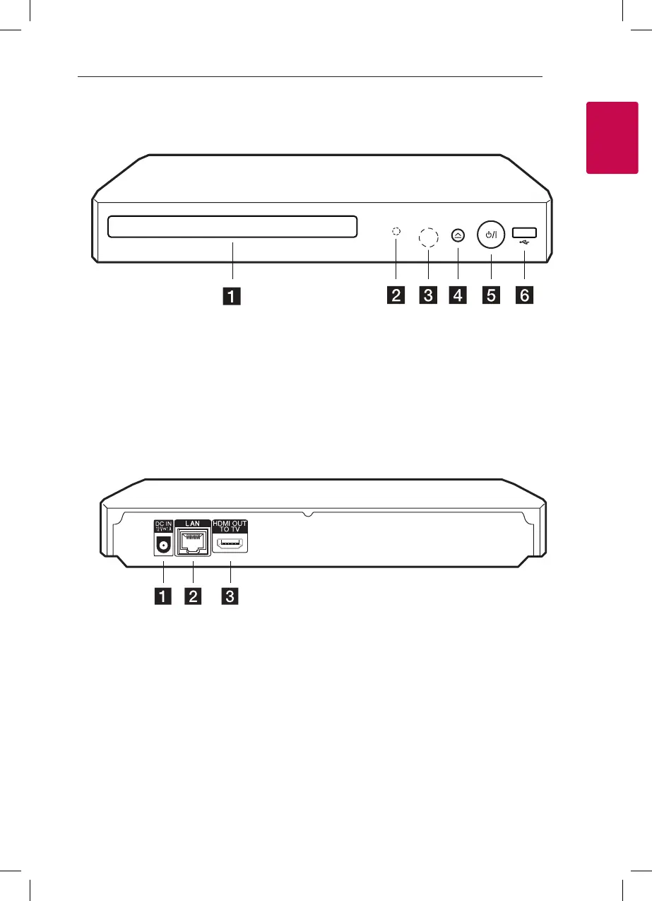 LG BP255 - Player Panel Layout; Front Panel Controls and Indicators; Rear Panel Ports and Connections
