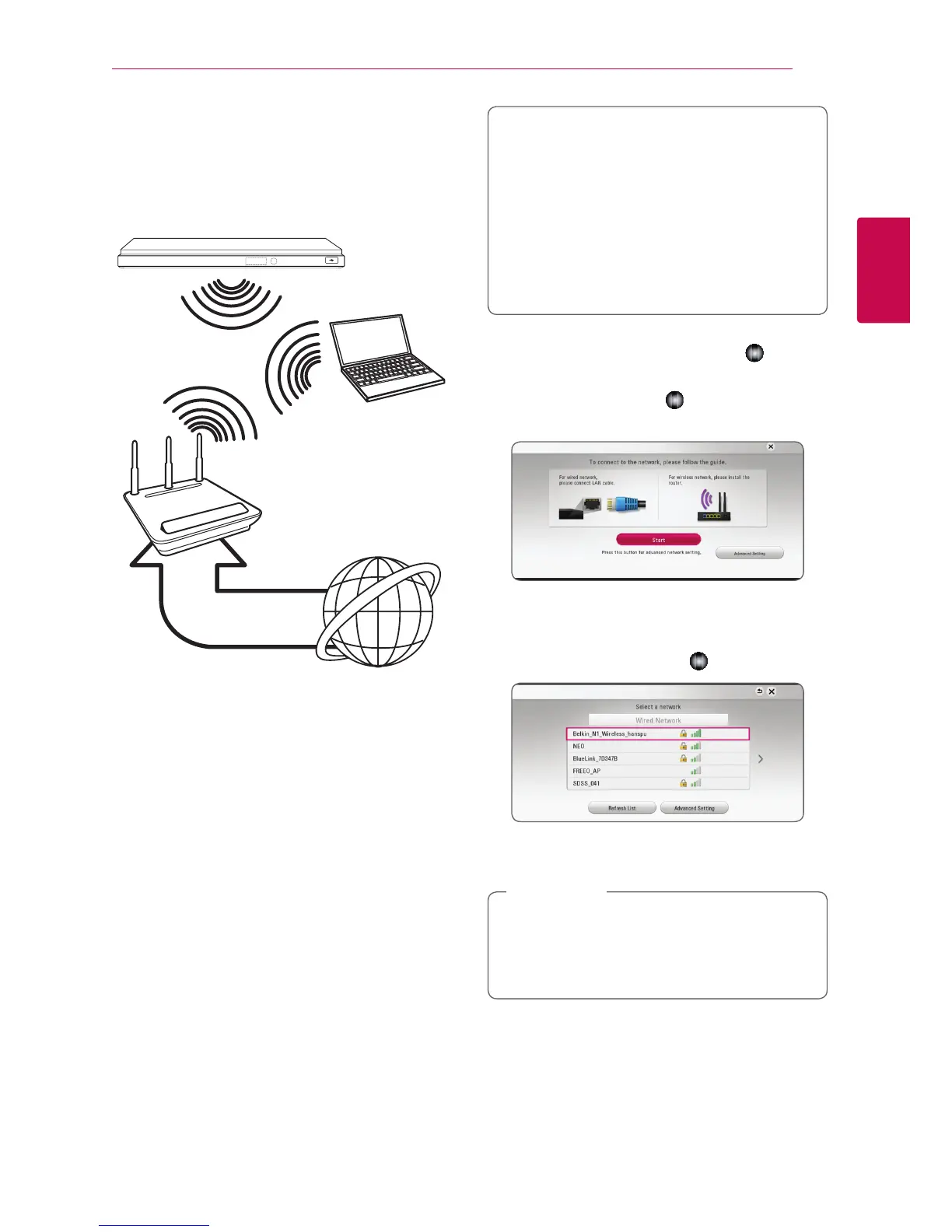 For the wireless network connection, the player