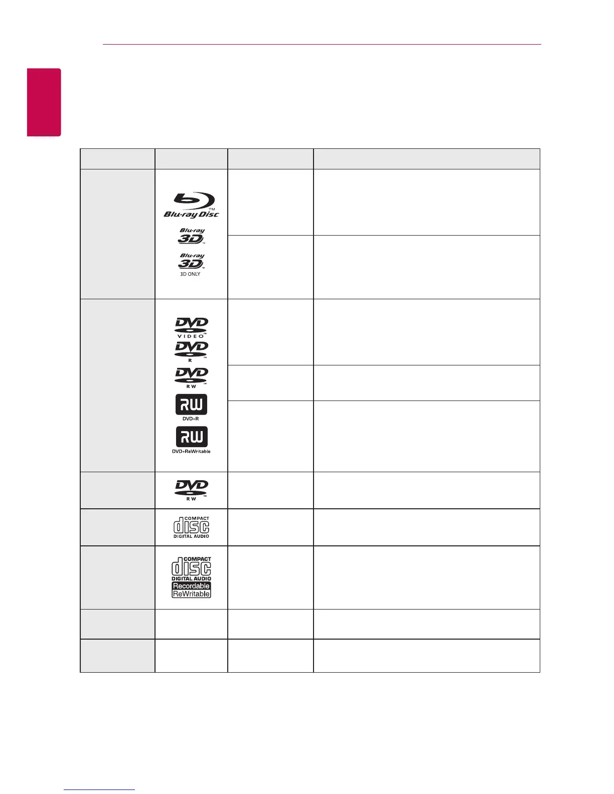 Playable discs and symbols used in this manual