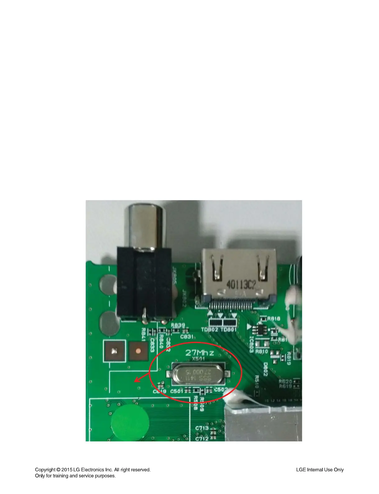 1) Please check the soldering status of 27 MHz crystal (X501).