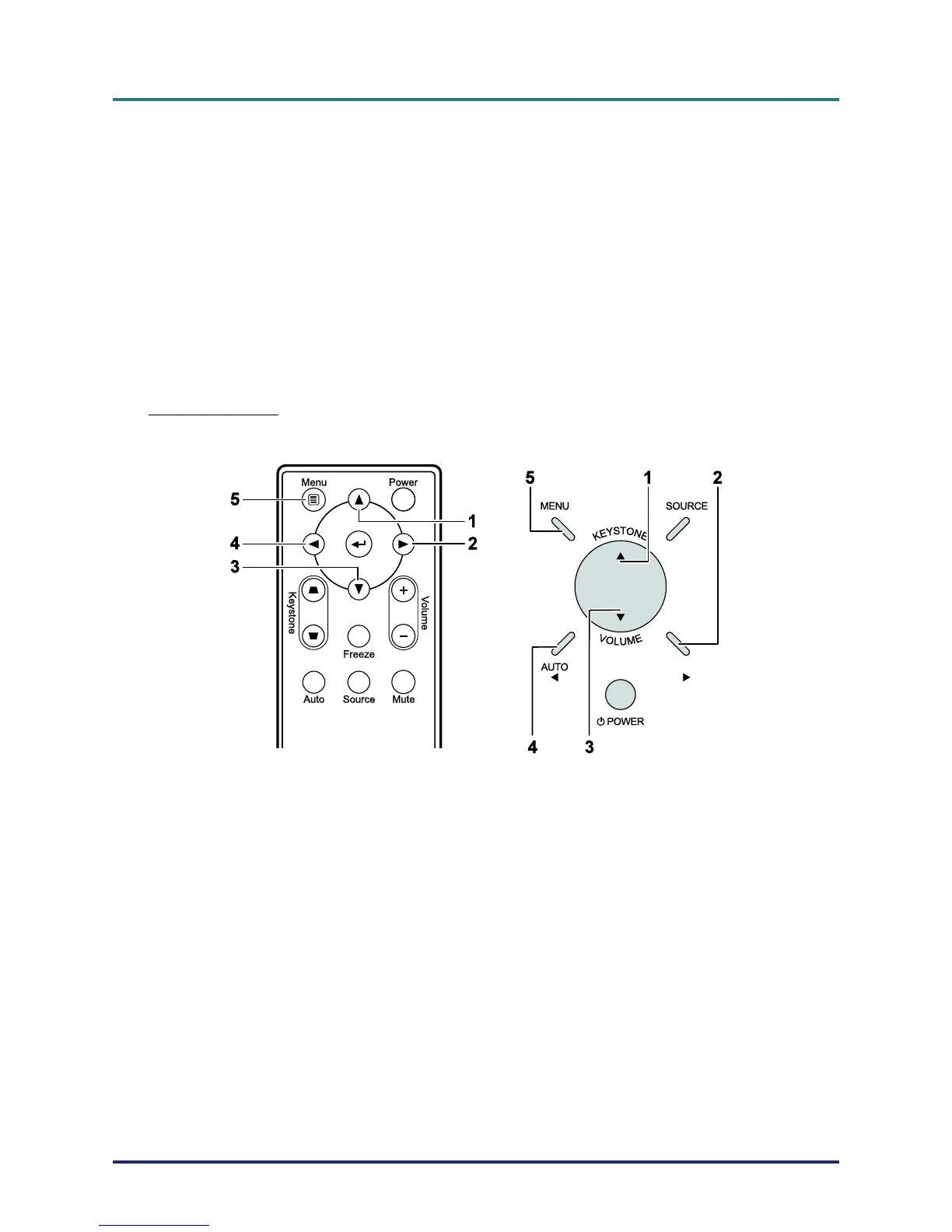 Some buttons on the projector have multiple functions. For example, item 1 on the projector functions