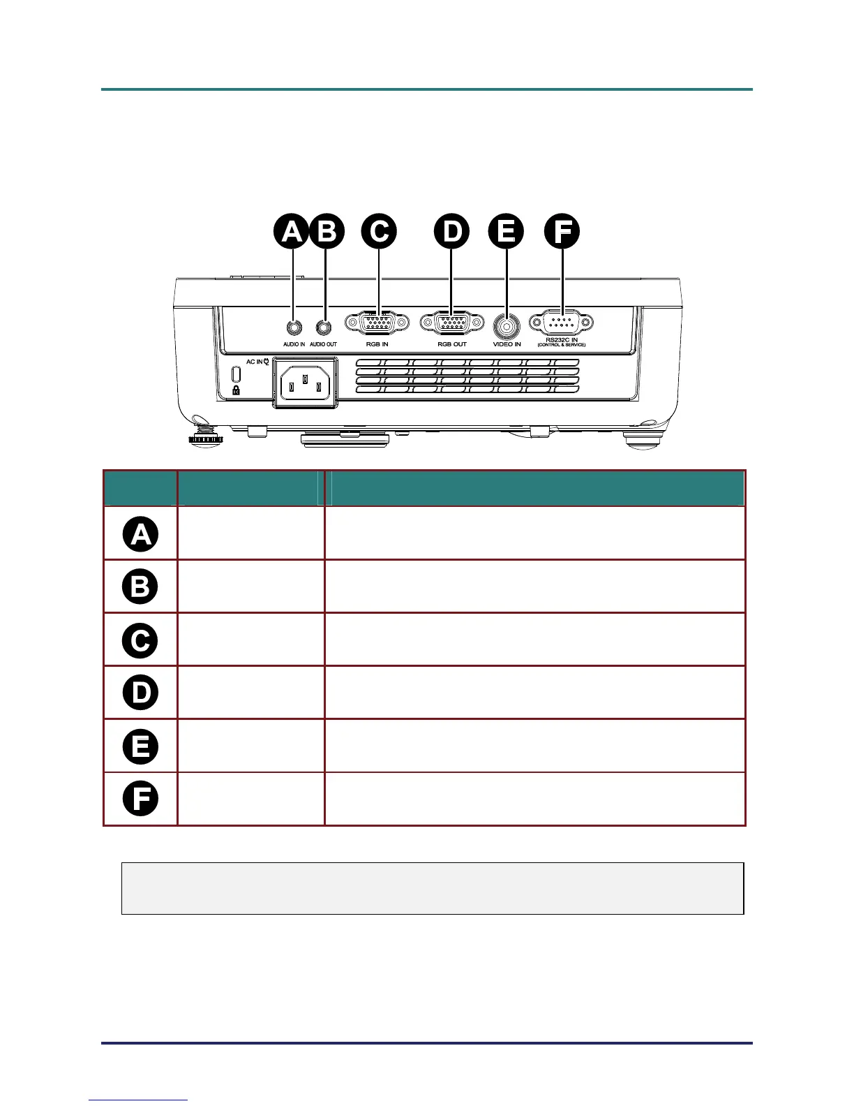 RGB IN Connect the RGB CABLE from a computer or components