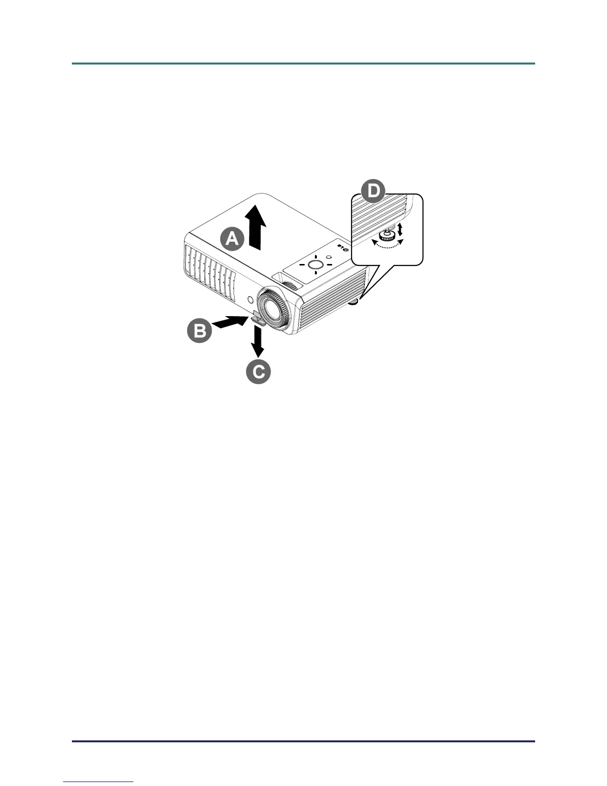 To lower the level of the projector, press the height-adjuster button and push down