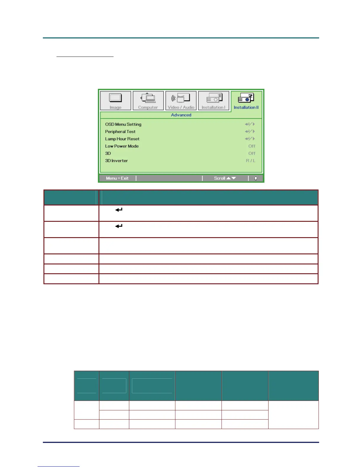 Press the Menu button to open the OSD menu. Press ◄► to move to the Installation II menu.