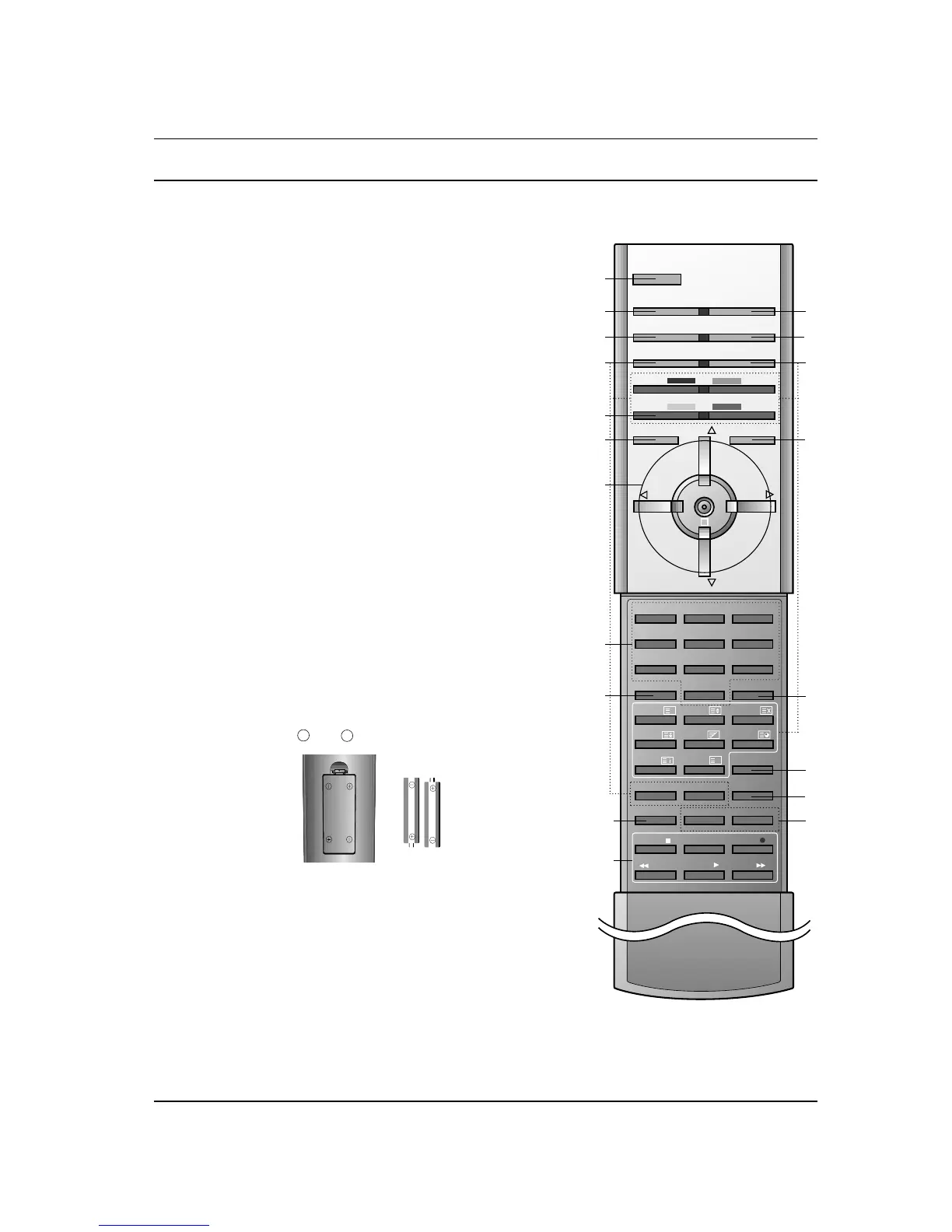 To load the batteries, turn the remote control handset over and