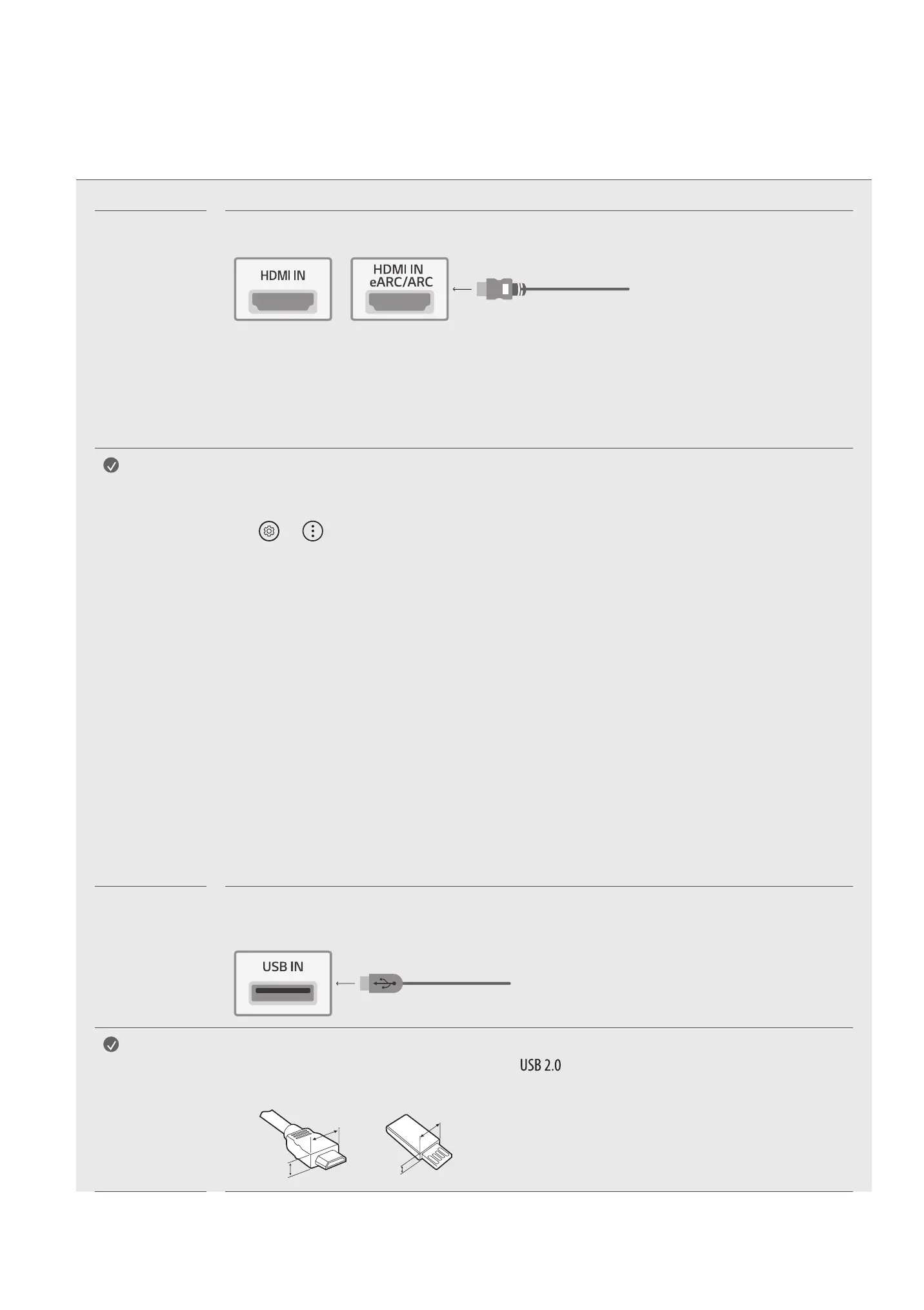 Connect various external devices to the TV and switch input modes to select an external device. For more information of external device’s connection,