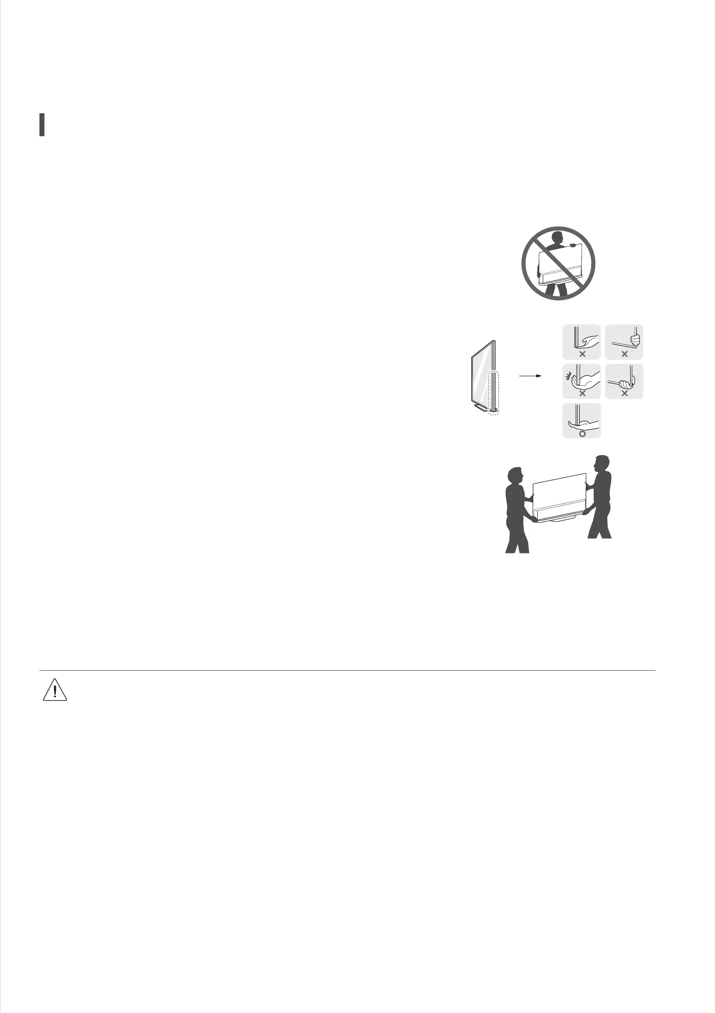 • Hold the side and bottom of the TV frame firmly. Make sure not to hold the transparent part,