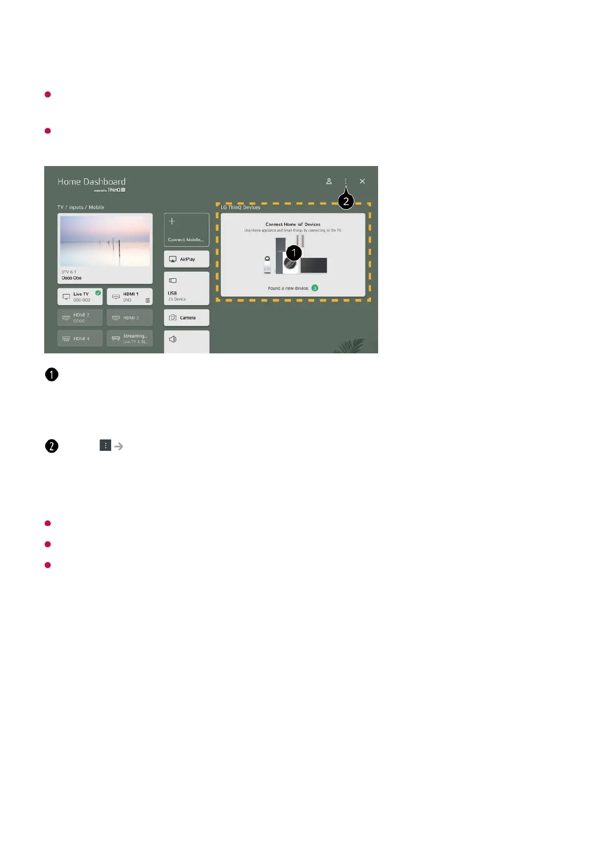 Connectable LG ThinQ devices and available functions may differ between mobile and TV.
