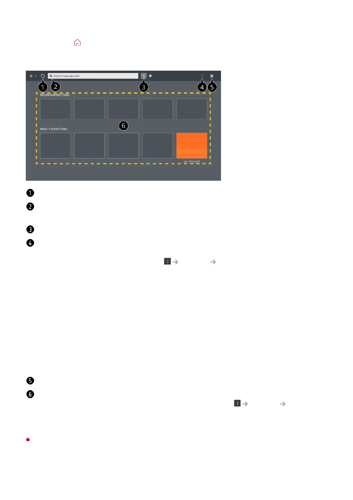 Settings : You can change the web browser settings.