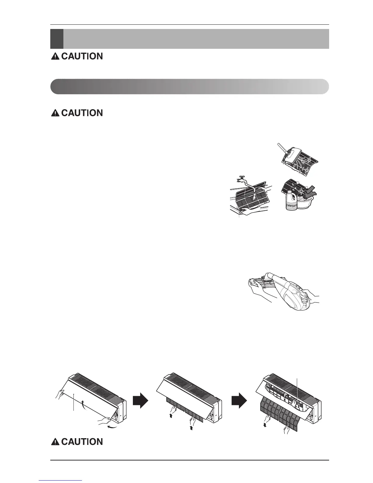diagrams for each model type. Clean the filters with a vacuum cleaner