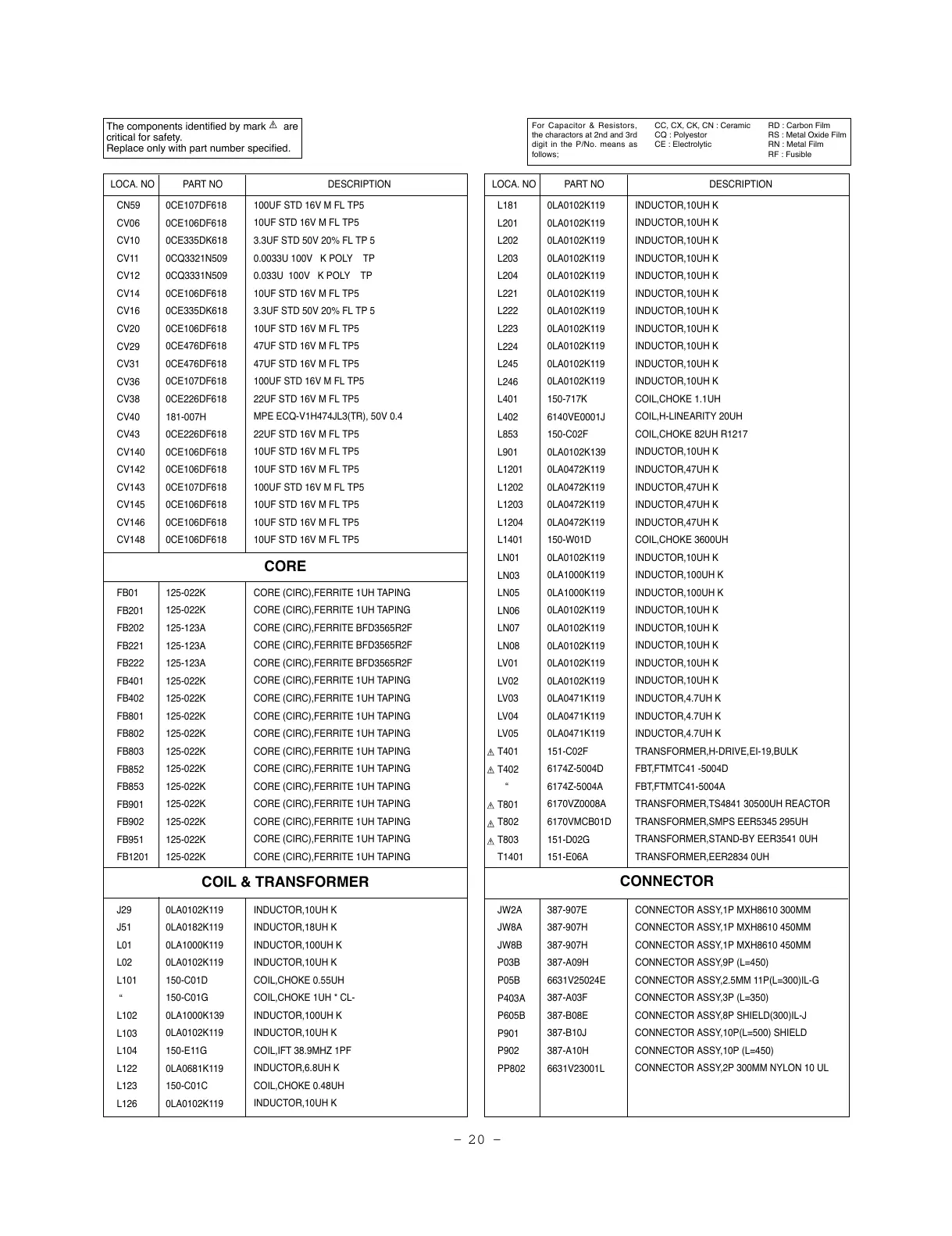LOCA. NO PART NO DESCRIPTION