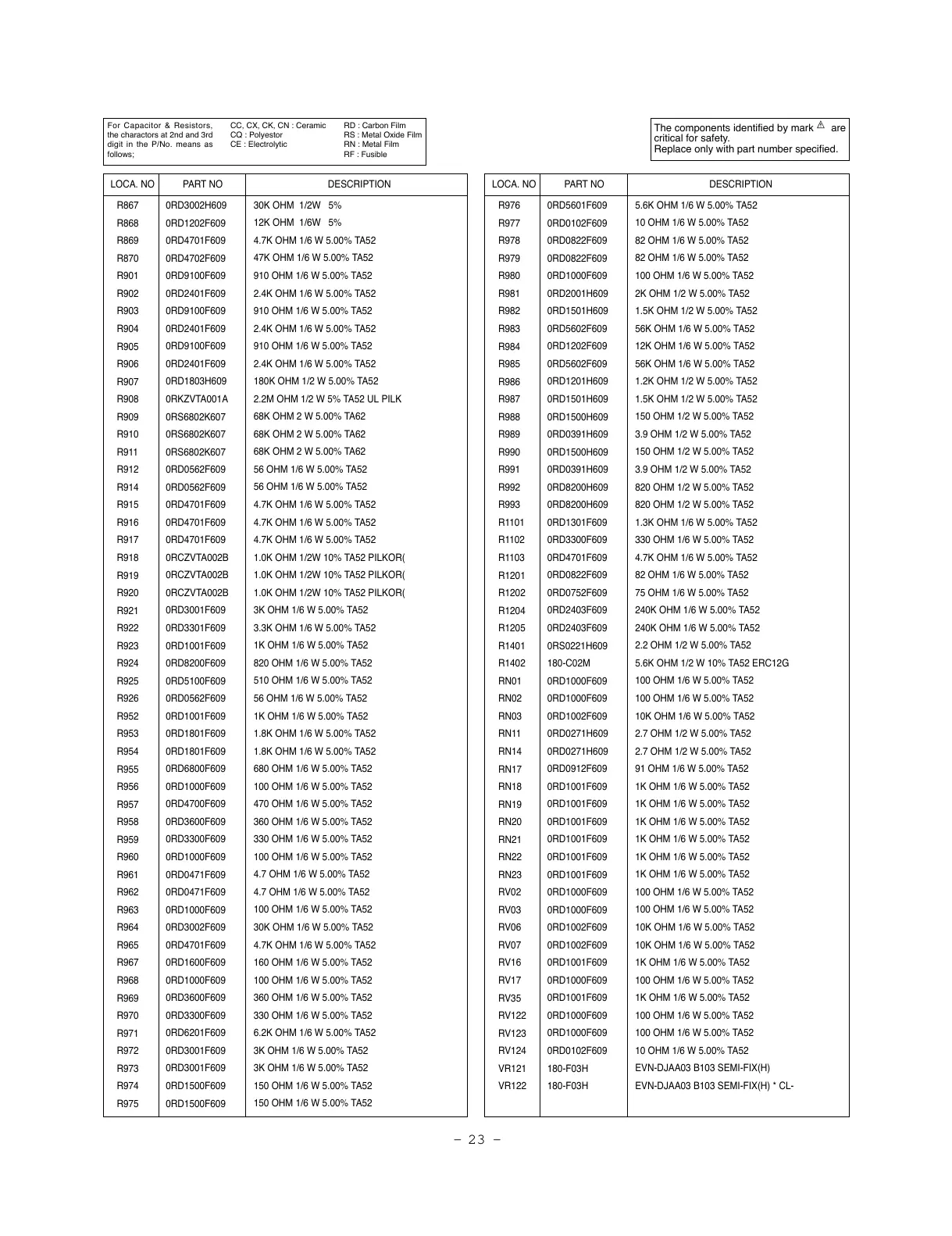 910 OHM 1/6 W 5.00% TA52