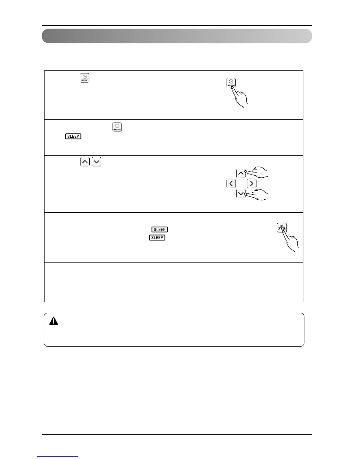 Repeat pressing         button to enter the SLEEP reservation setting mode.