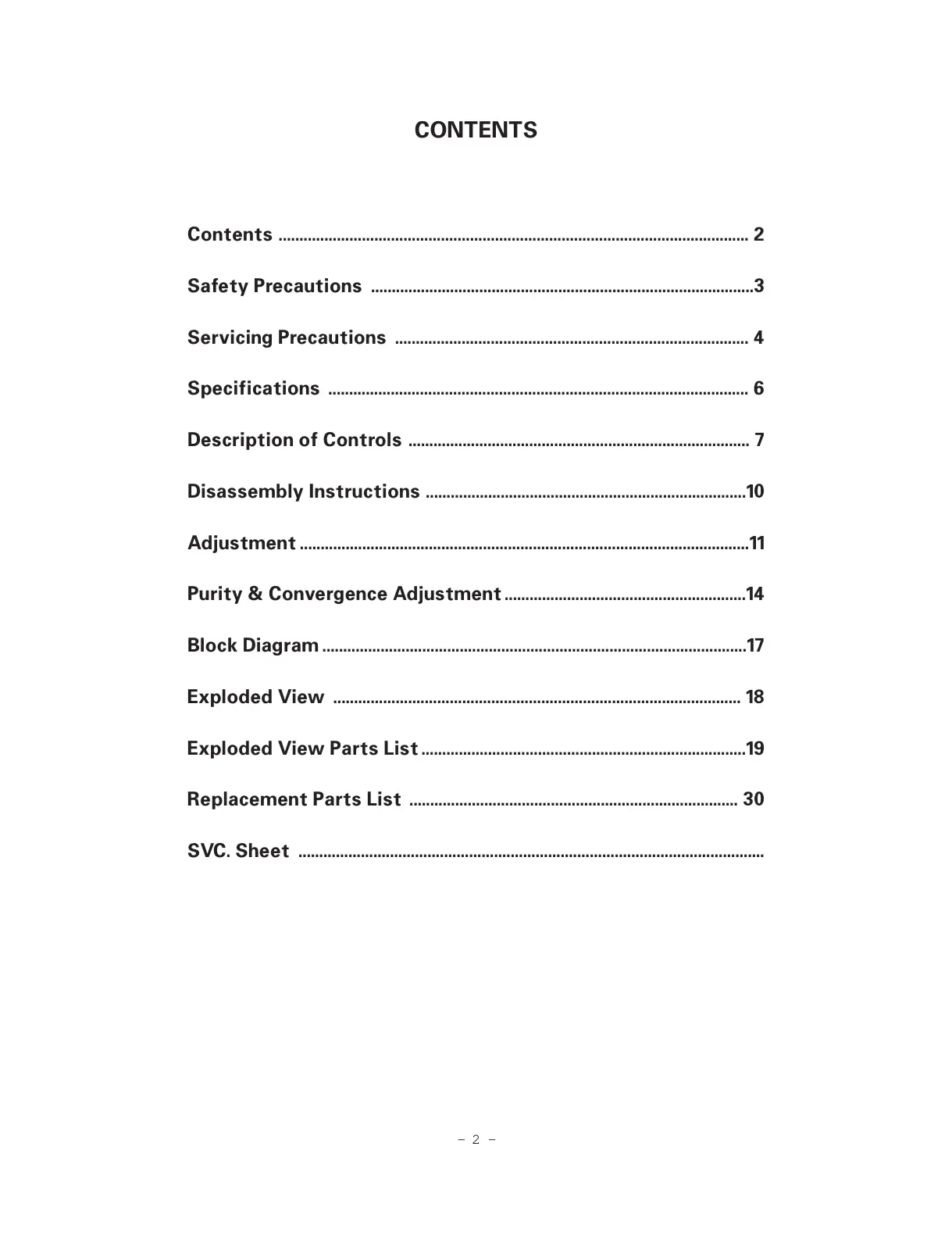 Exploded View Parts List ..............................................................................19
