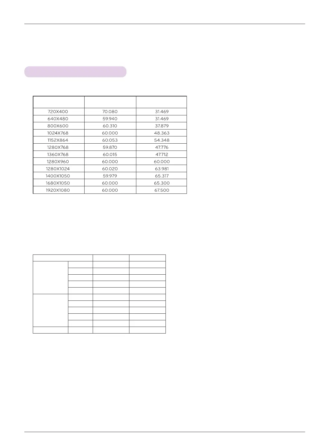 Format Vertical Freq.(Hz) Horizontal Freq.(kHz)