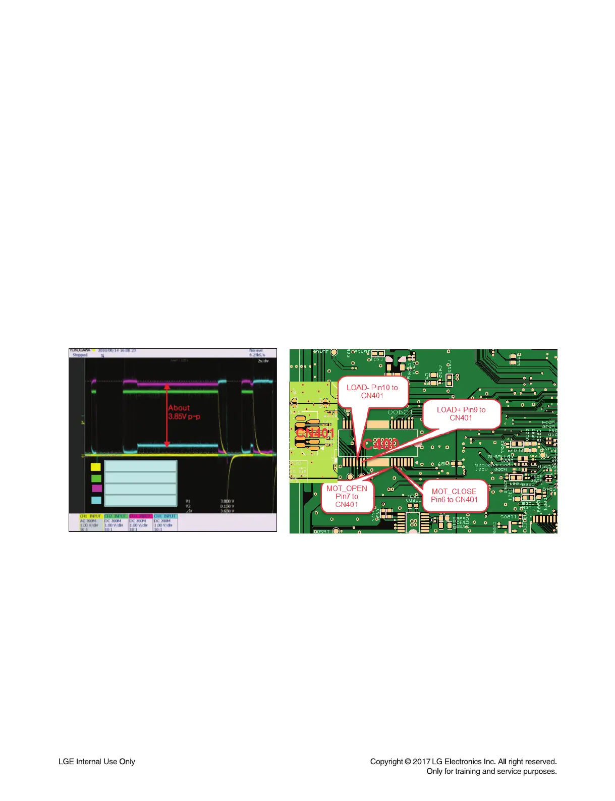 2) Check LOAD± from IC401 to CN401 for driving the tray open / close motor. It is about 3.85 Vp-p.