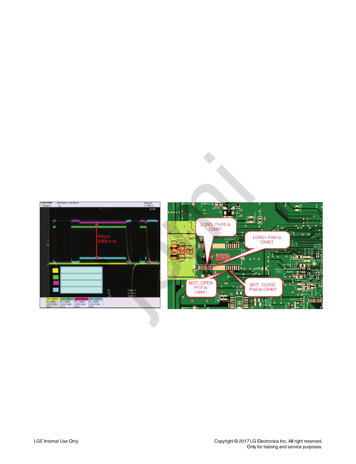 2) Check LOAD± from IC401 to CN401 for driving the tray open / close motor. It is about 3.85 Vp-p.