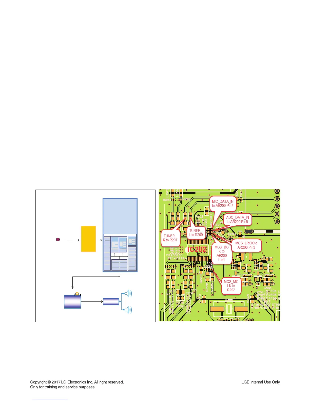 2) Check if MCS_BCK, MCS_LRCK, & MCS_MCLK are entered from IC500 to IC202.