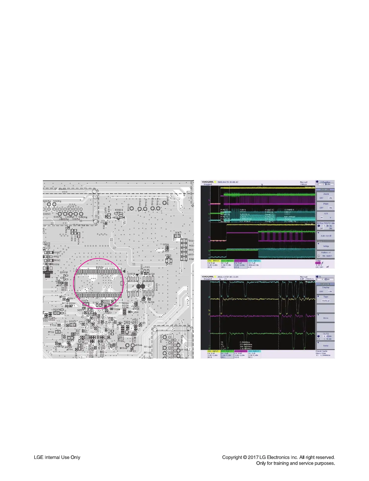 < Signal waveform >< MAIN board bottom view >