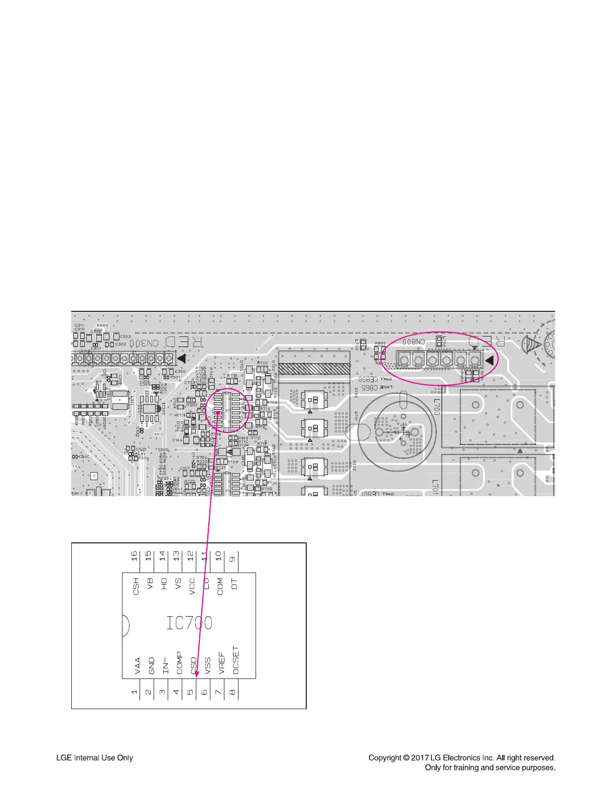 Replace IC700 ~ IC702, IC800 ~ IC802 on MAIN board.