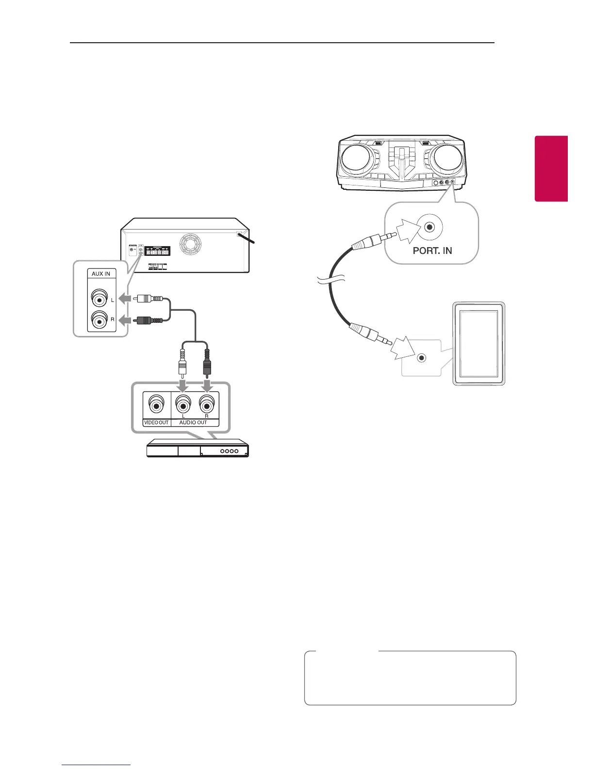 device (MP3 or PMP etc) to the PORT. IN (3.5 mm)