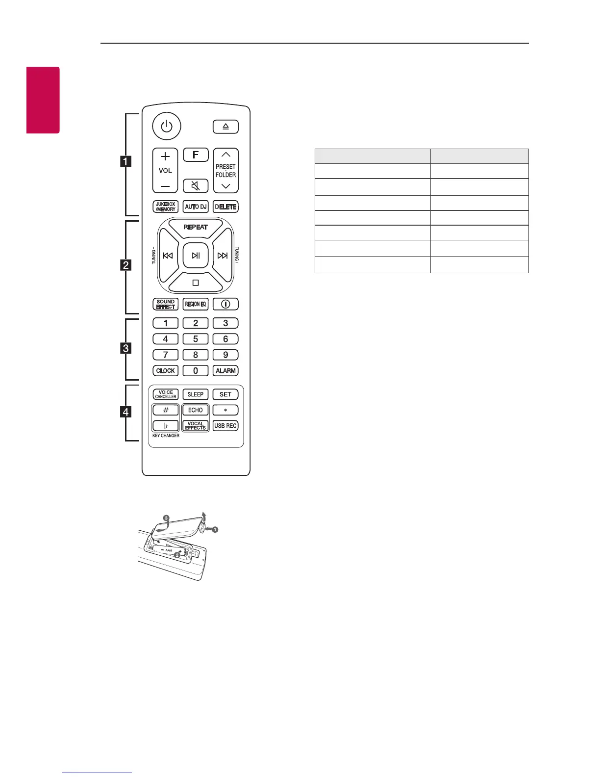 - Selects JUKE BOX mode. (Page 36)