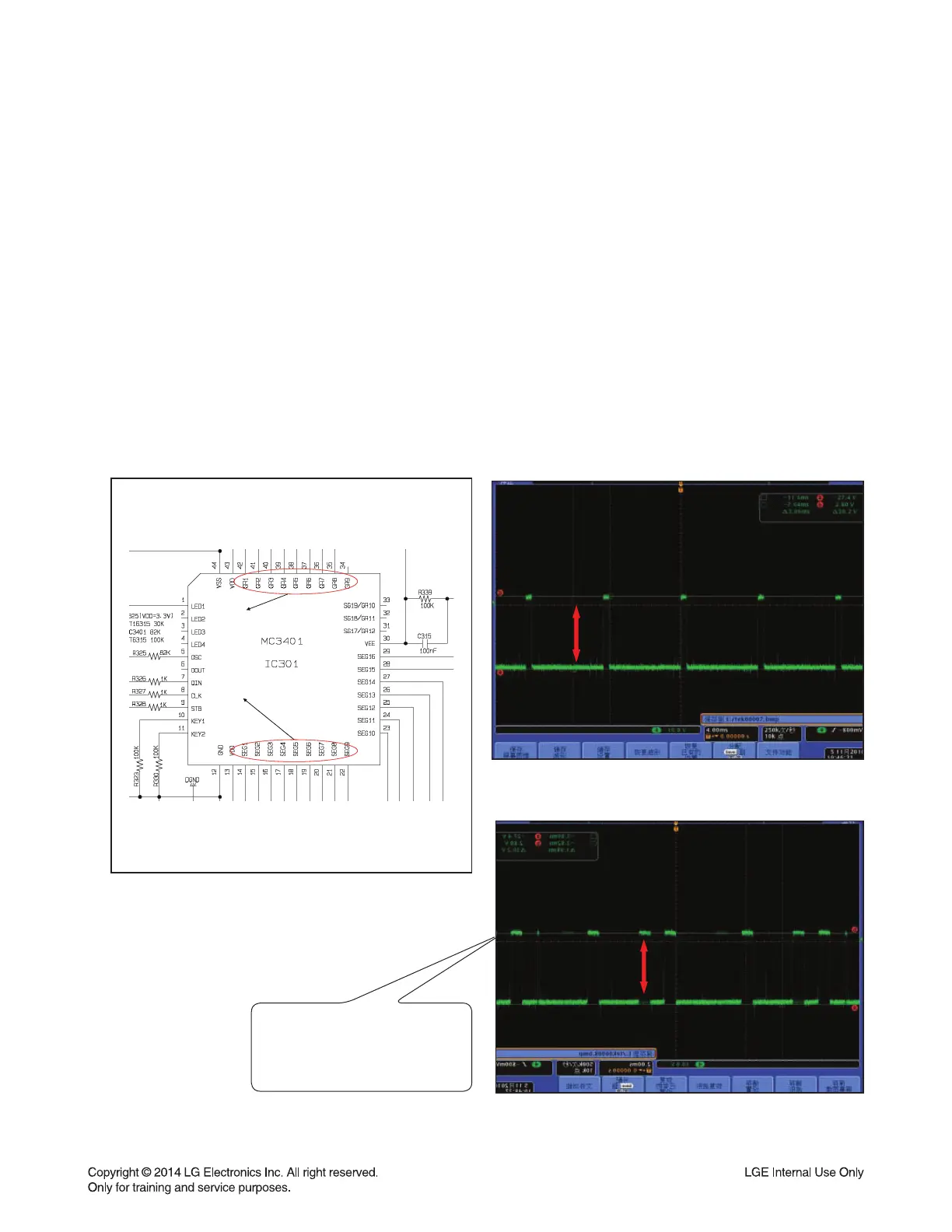 Check the SG signal(pulse signal) of IC408 on the FRONT board.