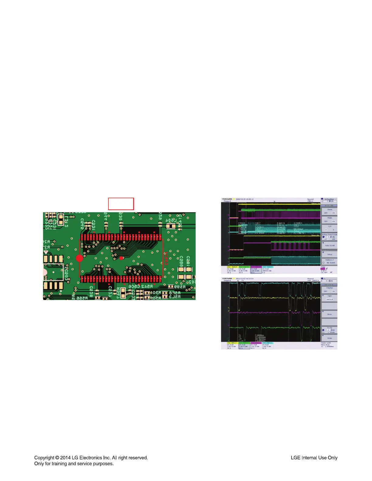 1) Check below waveform & soldering status of SDRAM (IC502) on MAIN board.