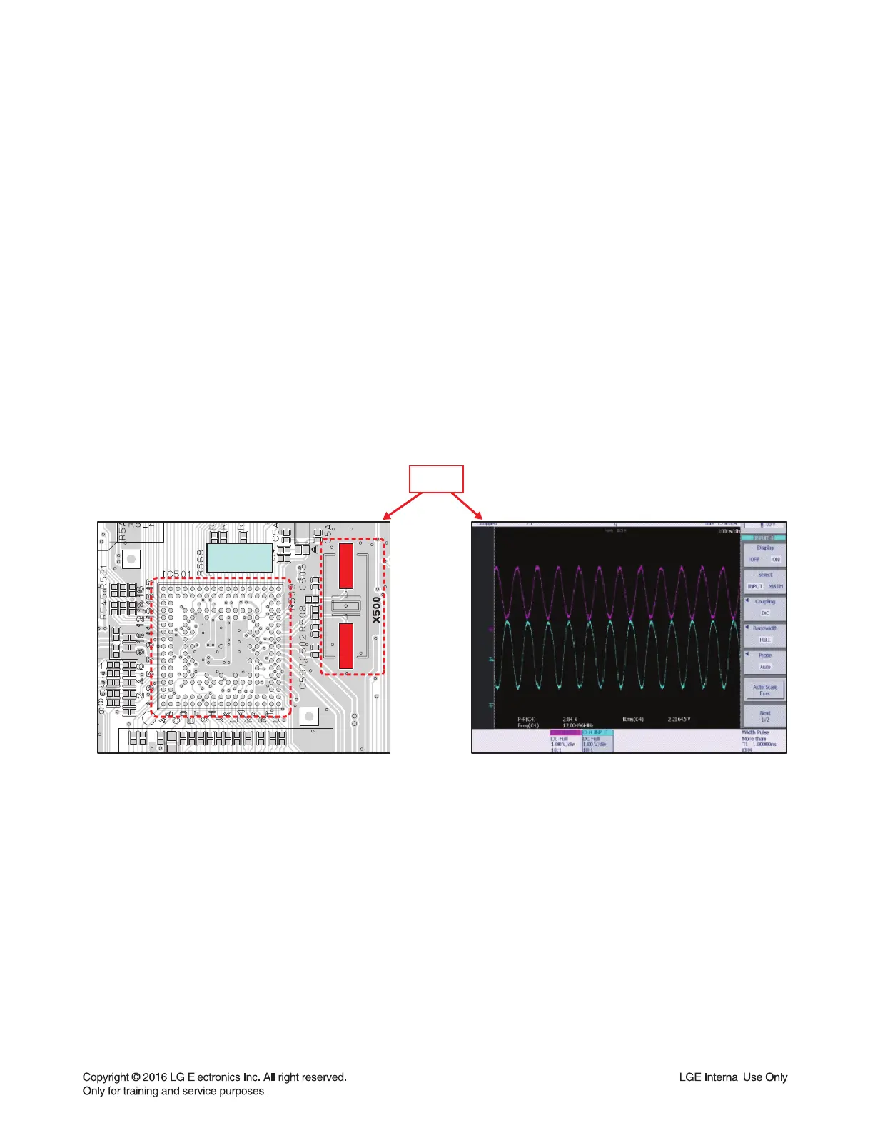 1) If 3.3 V & 1.2 V is normal, check Reset ‘High’ of IC501 pinT12 on MAIN board.