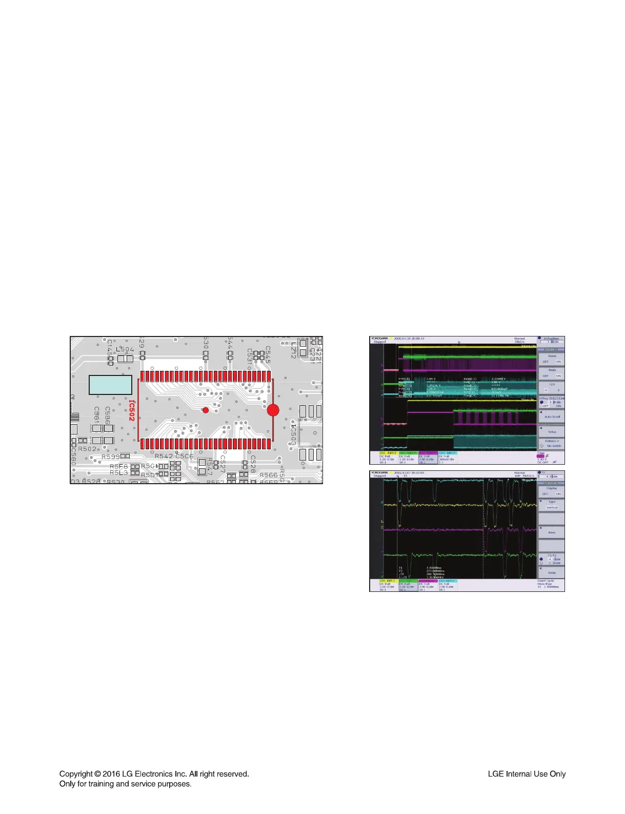 1) Check below waveform & soldering status of SDRAM (IC502) on MAIN board.