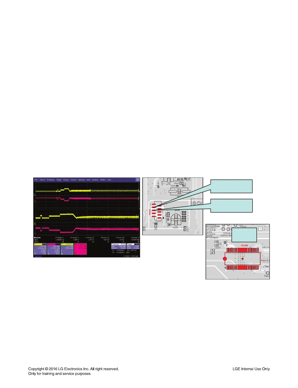 2) Check the SP- & SP+ from IC408 to CN405 for driving SPINDLE motor. It is about 3.6 Vp-p.