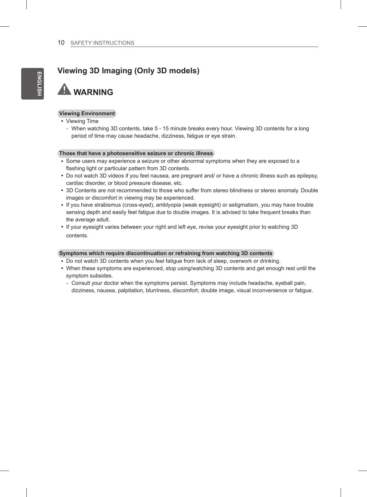Symptoms which require discontinuation or refraining from watching 3D contents