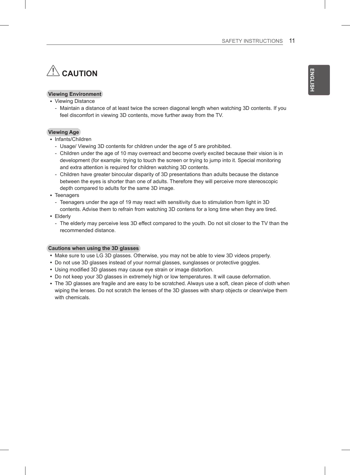 Cautions when using the 3D glasses