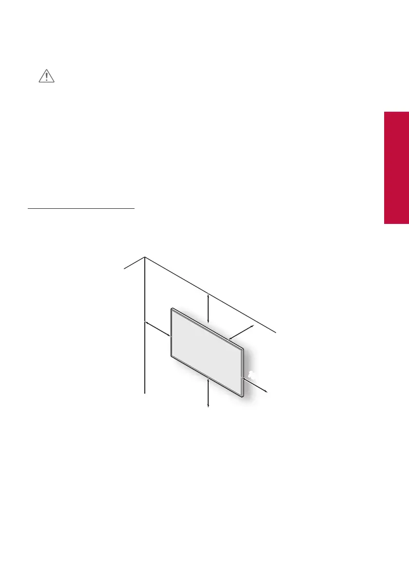 Allow at least 10 cm of clearance from the wall for ventilation, and install the product with care to prevent it from