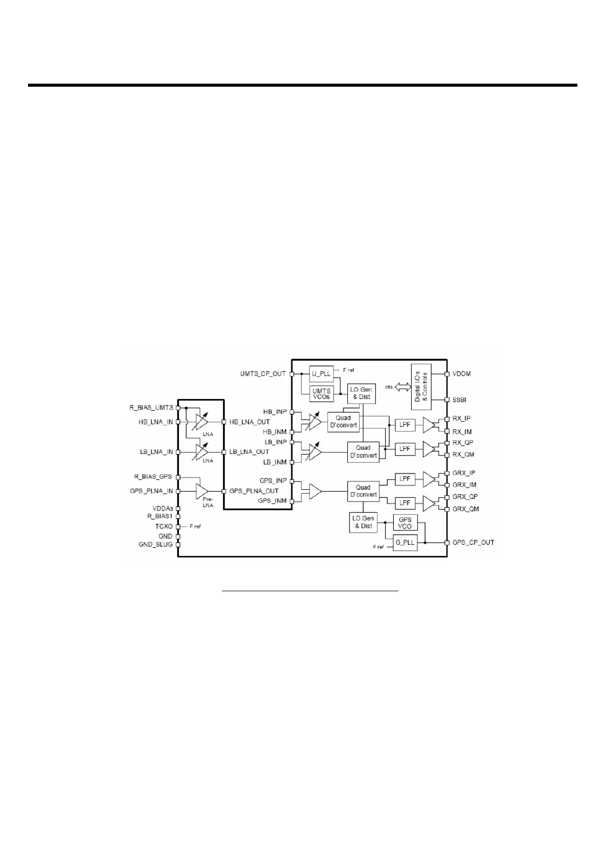 The UMTS Rx input is provided with an on-chip LNA that amplifies the signal before a second stage