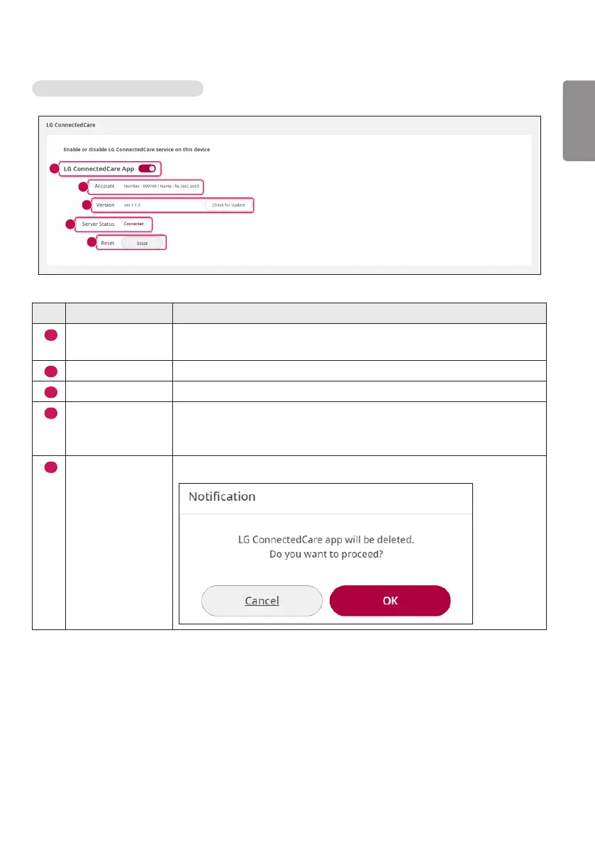 Displays the status of the LG ConnectedCare app.