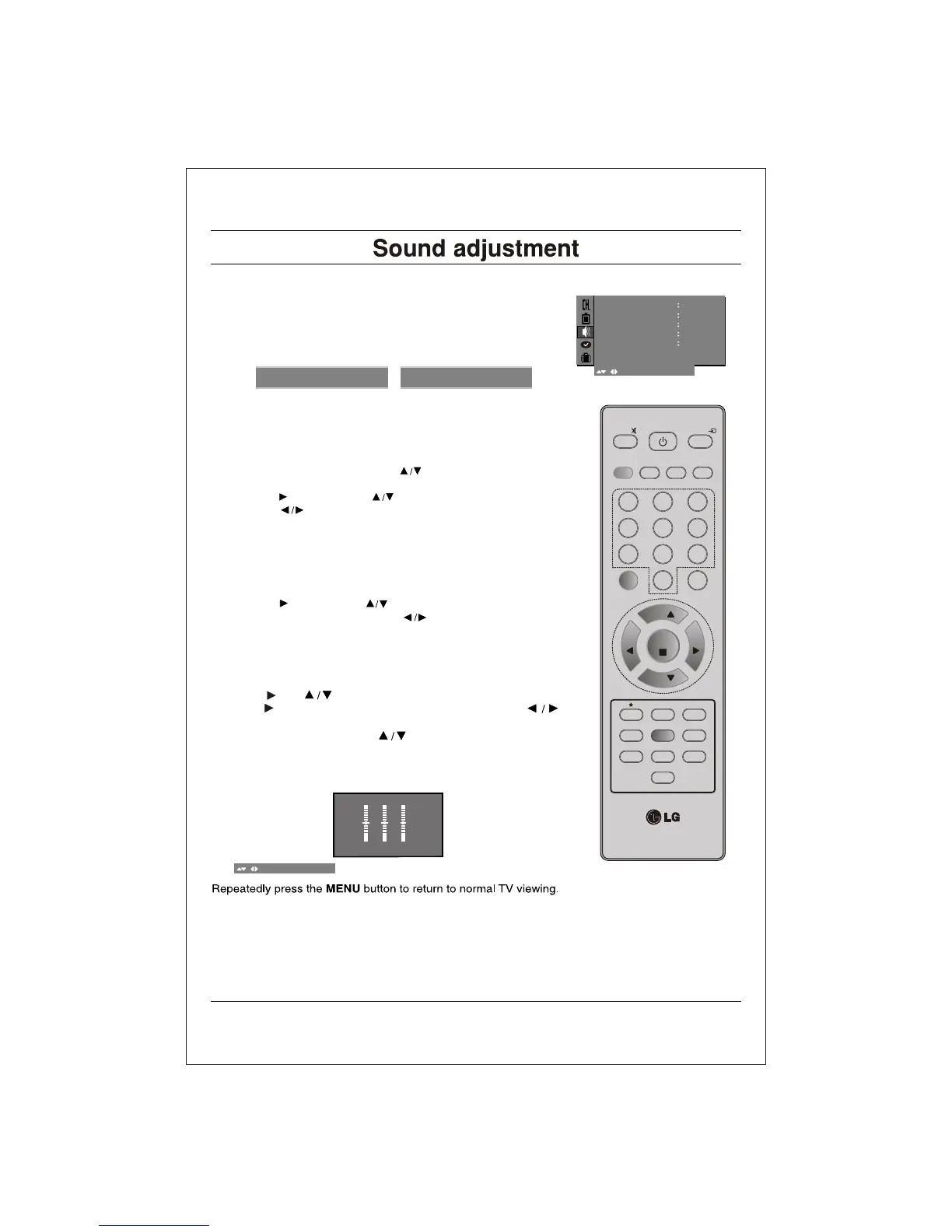 1. Press the MENU button and then button to select the Sound