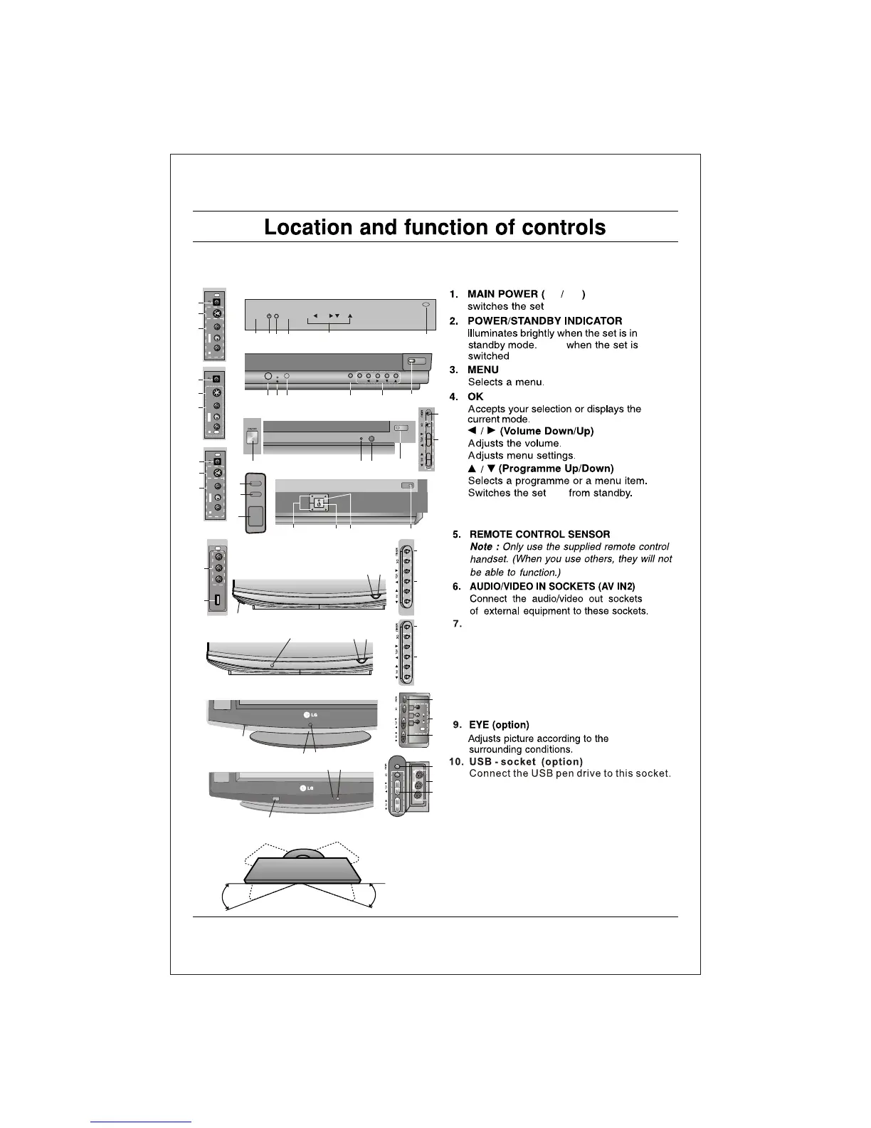 Shown below is a simplified representation of front or side panel, here shown may be somewhat different from your set.