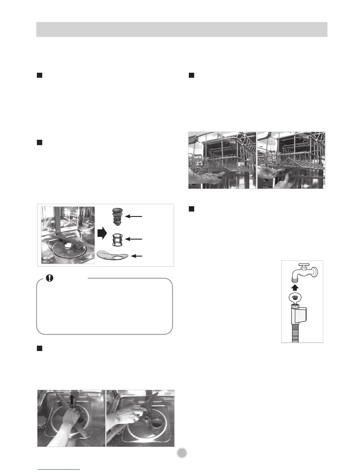 To prevent trouble and poor operating, it is important to check filters and spray arms