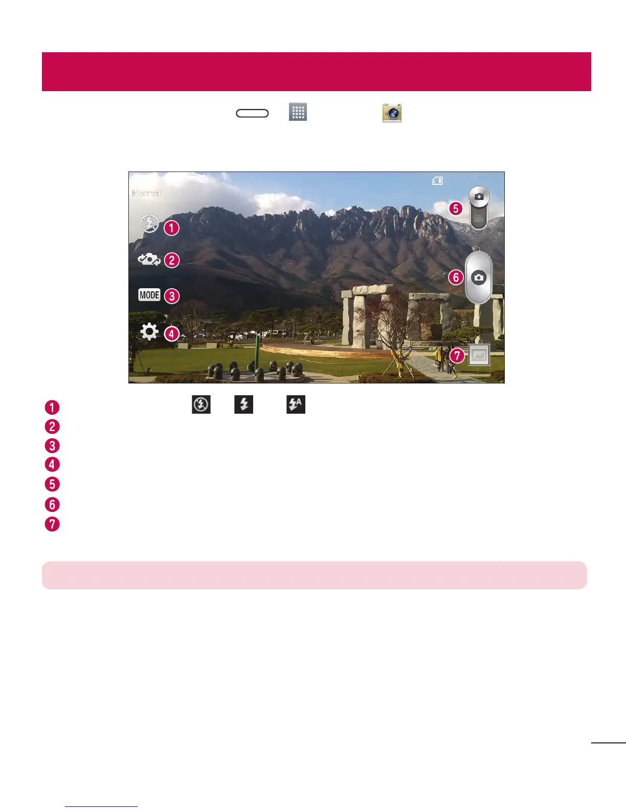 Gallery – Tap to view the last photo you captured. This enables you to access your gallery and view saved