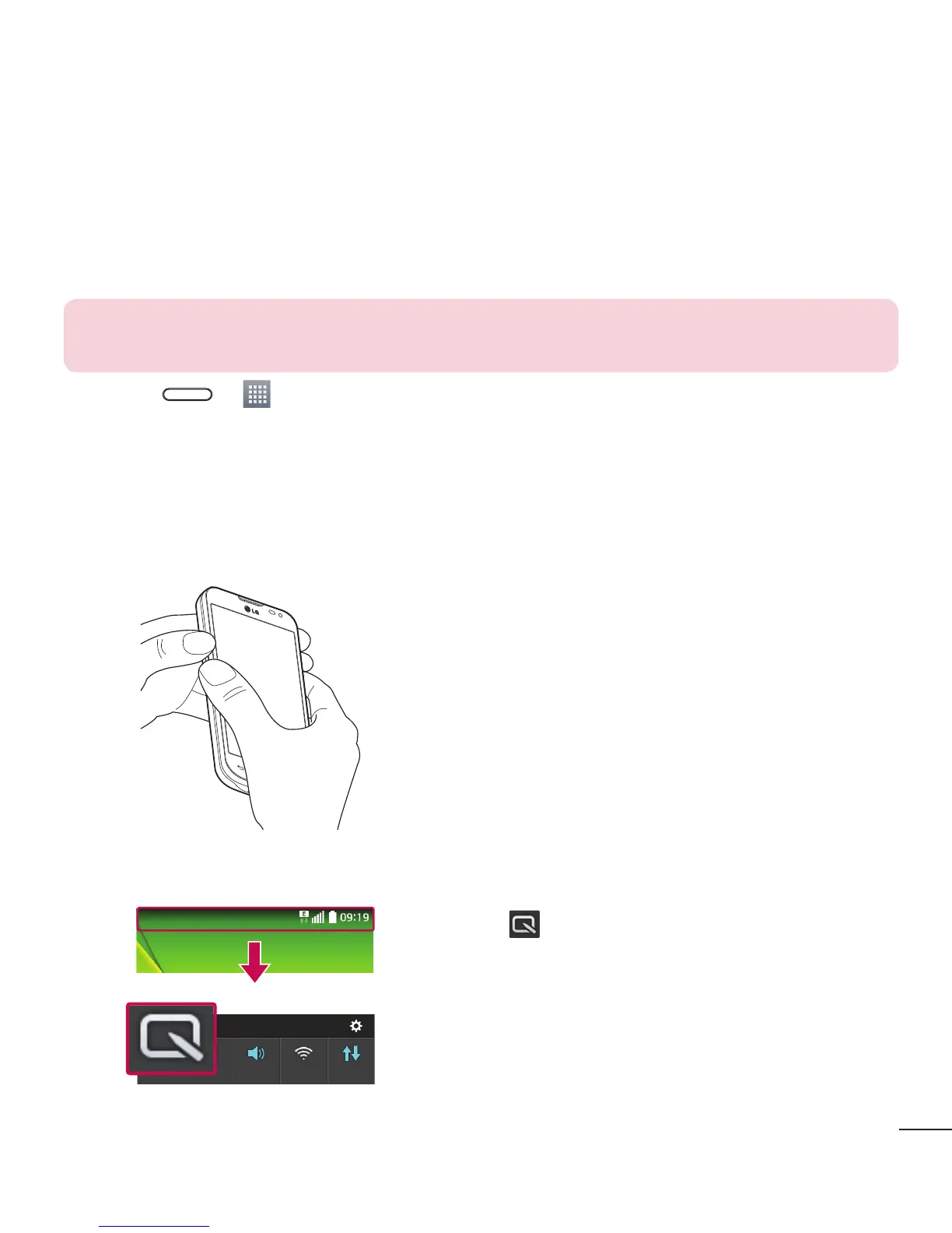 1 Enter the QuickMemo screen by pressing both