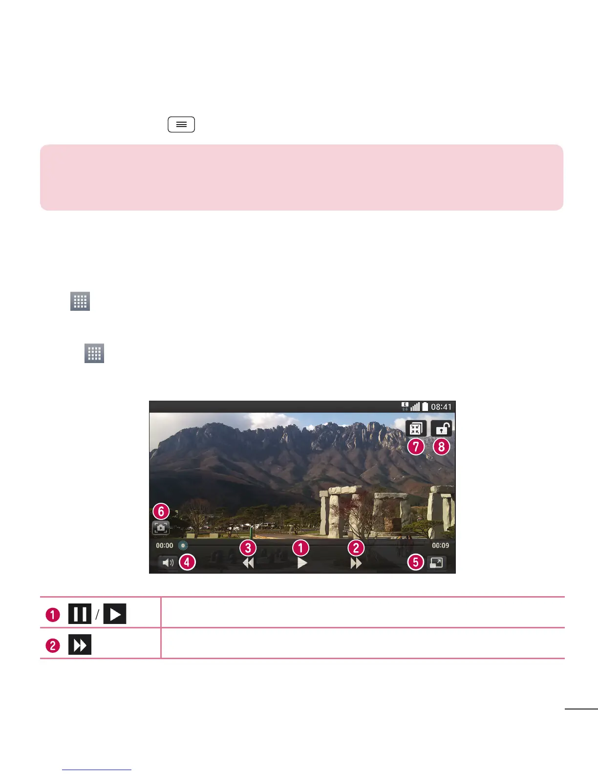 Your phone has a built-in video player that lets you play all of your favorite videos. To access the video player,