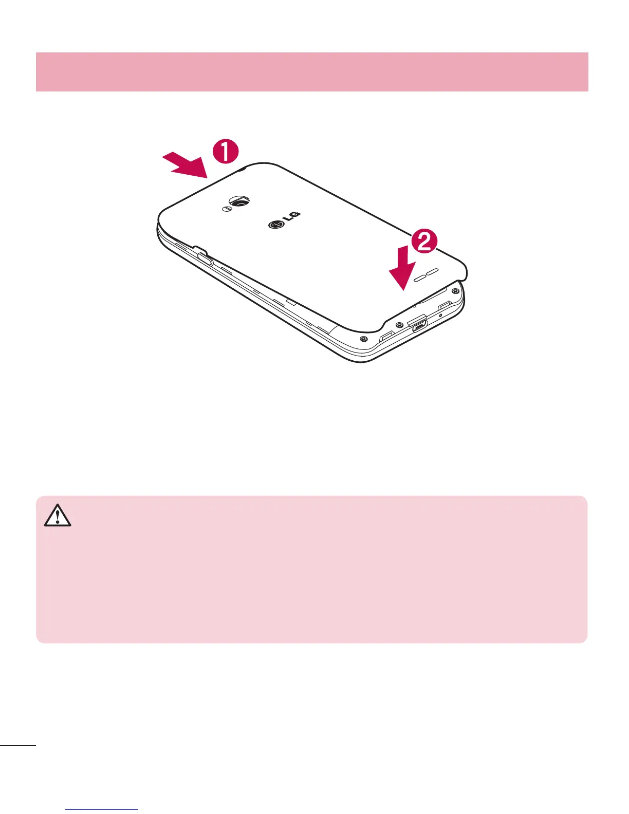 4 Legen Sie die Akkuabdeckung auf das Akkufach (1), und drücken Sie sie nach unten, bis sie einrastet (2).