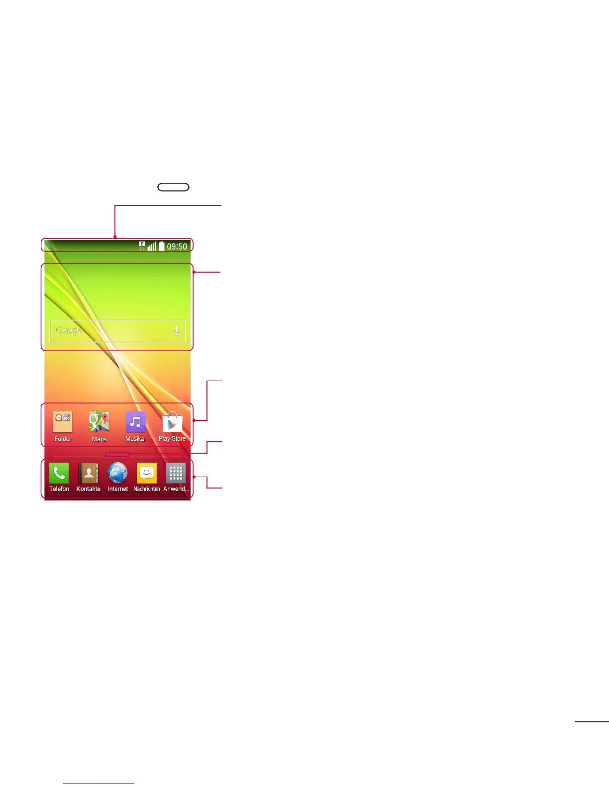 Anwendungen zugreifen. Es handelt sich hierbei um den standardmäßigen Homescreen, der aus jedem Menü