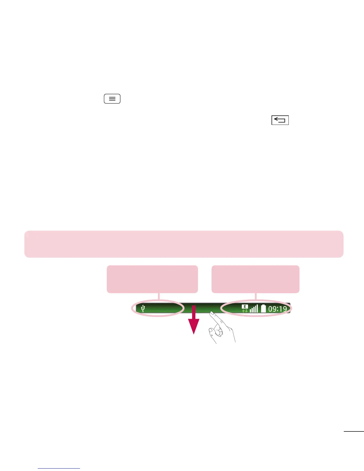 Wenn eine Benachrichtigung eingeht, wird das entsprechende Symbol oben auf dem Bildschirm angezeigt.